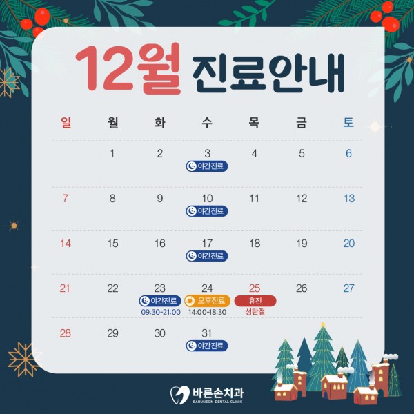 ✅ 12월 24일(수) 오후진료(14:00~18:30)