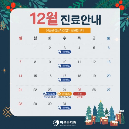 바른손치과 12월 진료 안내